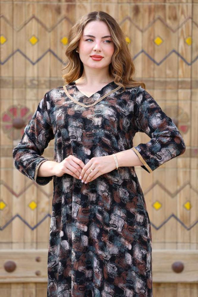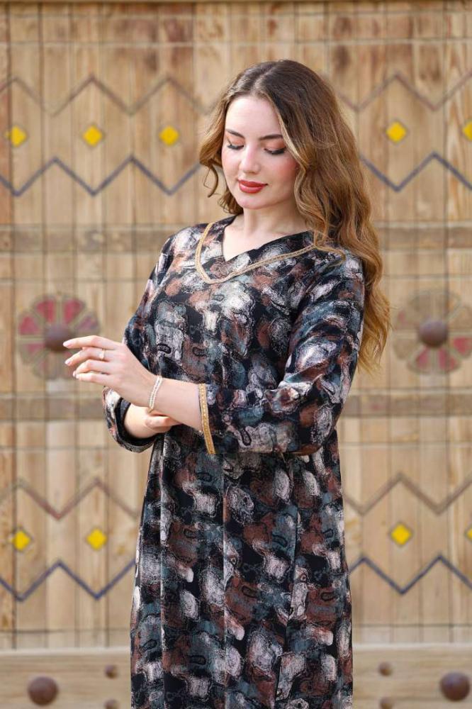 جلابية صيفية صُممت هذه الجلابية لتكون خيارك الأمثل في الأيام التي تبحثين فيها عن الراحة دون التنازل عن الأناقة. خامة الرّيون الناعمة تمنحك إحساسًا بالخفة والانتعاش، بينما تضيف النقشة المشجرة لمسة أنثوية عصرية. الياقة المصممة على شكل V تعزز من جمال العنق وتضفي طابعًا أنثويًا ناعمًا، مما يجعل هذه الجلابية مثالية للارتداء اليومي أو الجلسات العائلية.