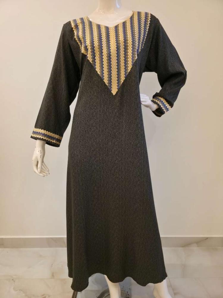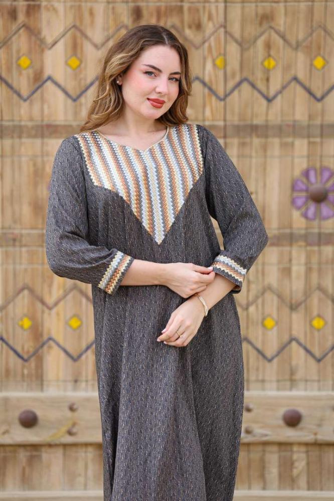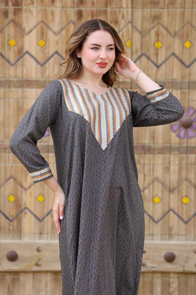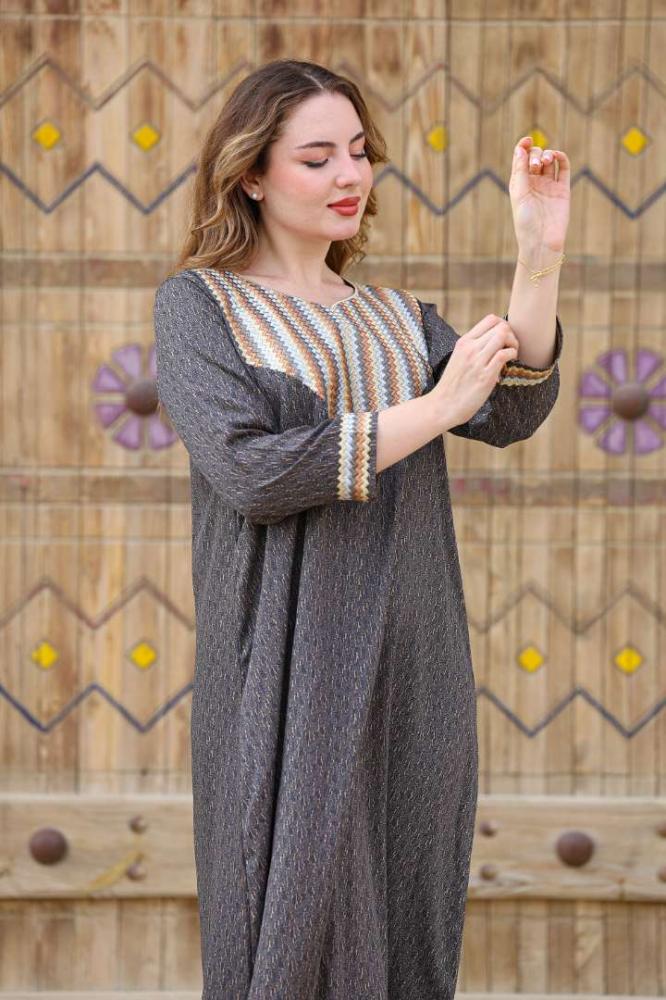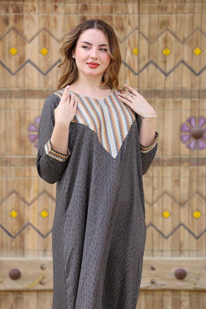 جلابية مشجرة قماش اليافرنت المعروف بملمسه الخفيف و انسيابيته، بتصميم أنيق يجمع بين الحيوية والراحة، مثالية للإطلالة اليومية أو الزيارات البسيطة.